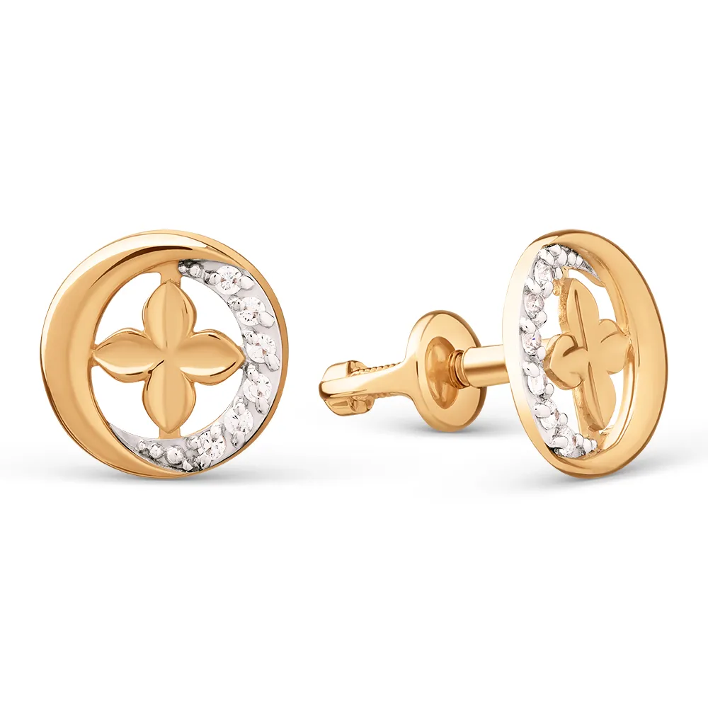 Эти серьги-пусcеты очаровывают цветочным мотивом, сверкающими фианитами и изящным блеском.