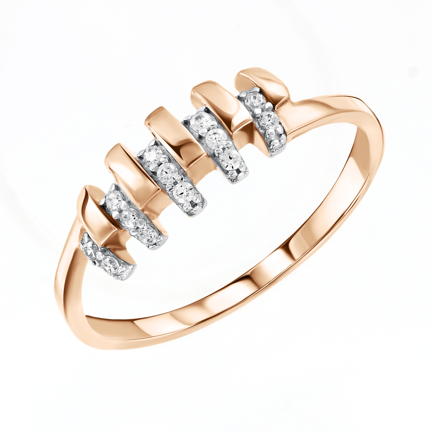 Стильное кольцо из красного золота 585 с оригинальным геометрическим дизайном и сияющими фианитами.
