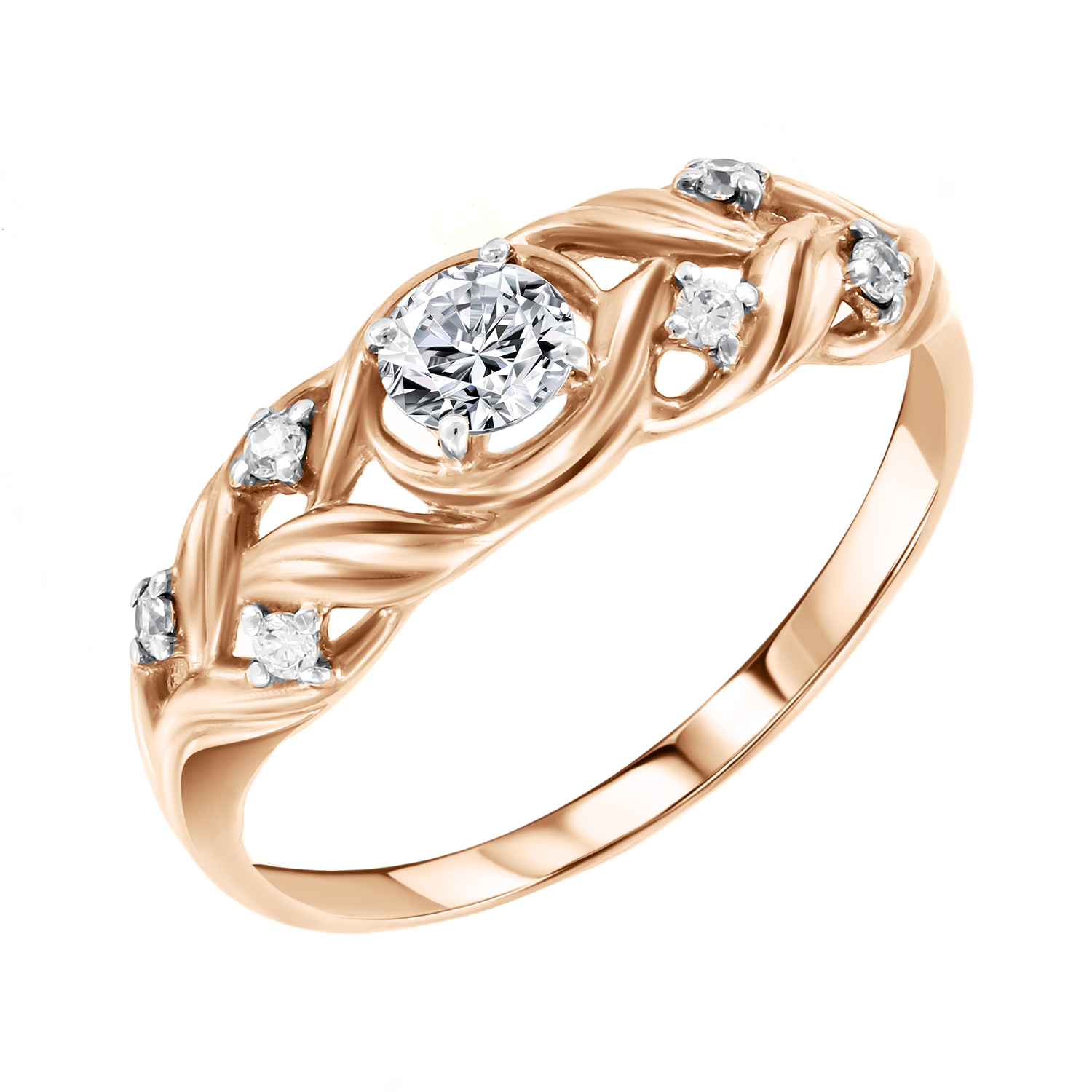 *** Если вы заказываете кольца размером больше 19,5 мм или меньше 16 мм, свяжитесь с нами по телефону. Изысканное кольцо из красного золота 585 с центральным сияющим фианитом, обрамлённым изящным плетёным узором. Дополнительные вставки фианитов подчёркивают блеск и создают эффект легкости и утончённости. Романтичный и элегантный дизайн делает кольцо идеальным украшением для особых случаев и повседневной элегантности.