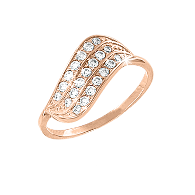 Изящное кольцо из красного золота с дорожками сияющих фианитов.