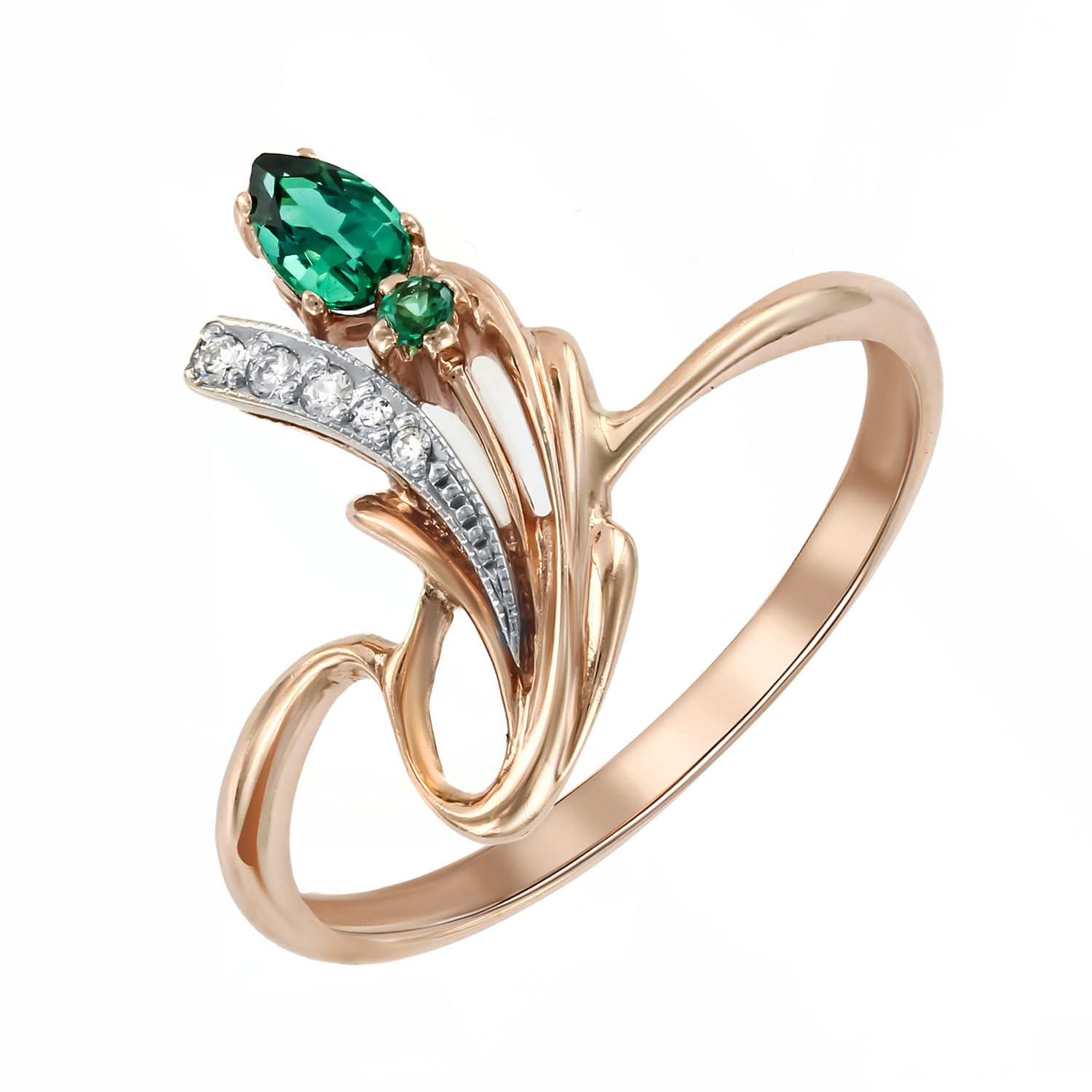 Изысканное кольцо из красного золота 585 с изумрудами и сияющими фианитами.