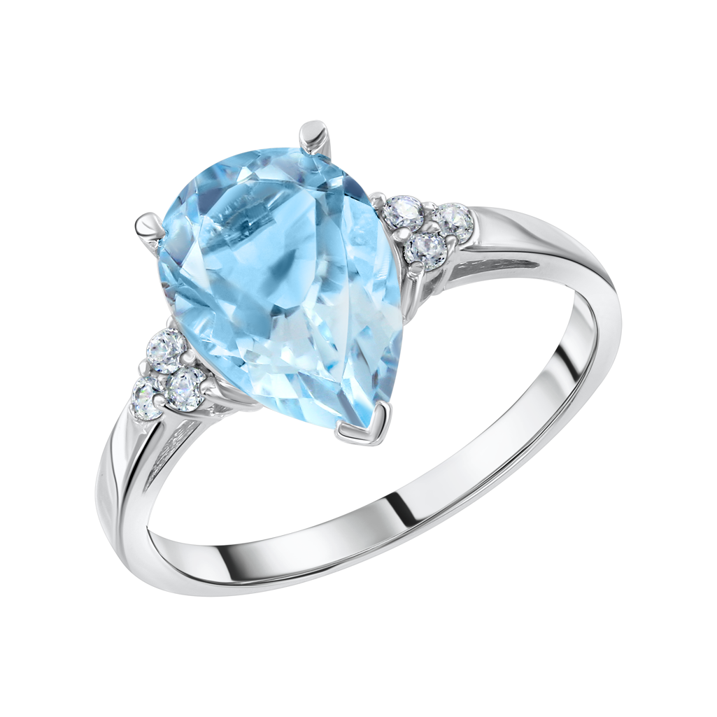 Женственное и изысканное кольцо, украшенное небесно-голубым топазом Sky в огранке «груша».