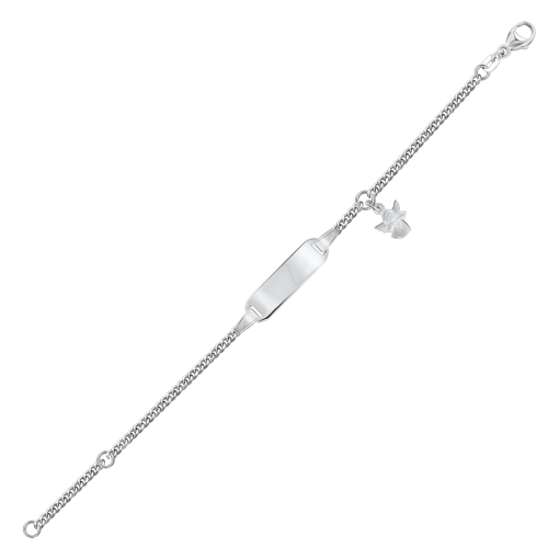 Элегантная пластинка может быть использована для гравировки имени или даты, а миниатюрный ангелочек-подвеска символизирует защиту и заботу.