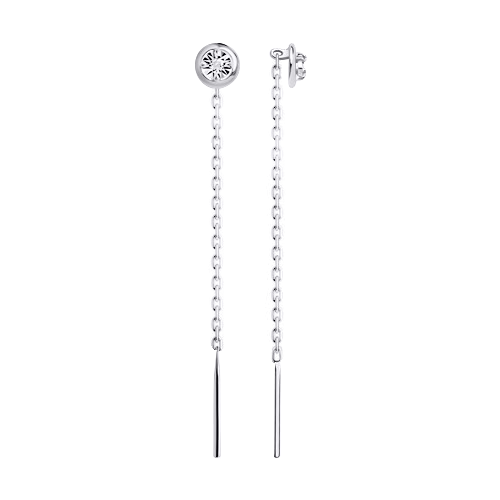 Элегантные серьги-протяжки из серебра 925 пробы с фианитами, высота ≈ 52 мм — это современное украшение, сочетающее лёгкость и утончённость.