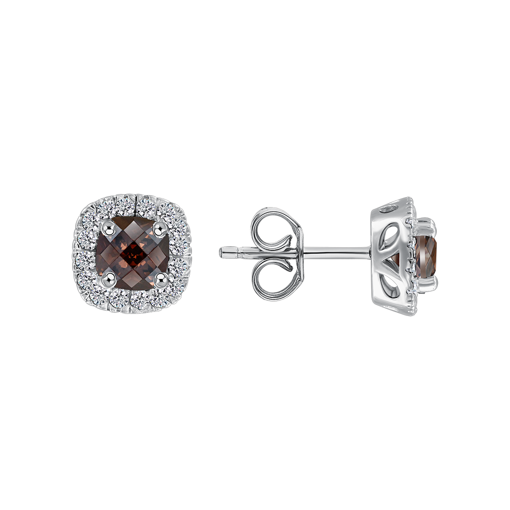 Центральный камень тёплого коричневого оттенка в окружении сверкающих фианитов придаёт украшениям глубину и изысканный блеск.