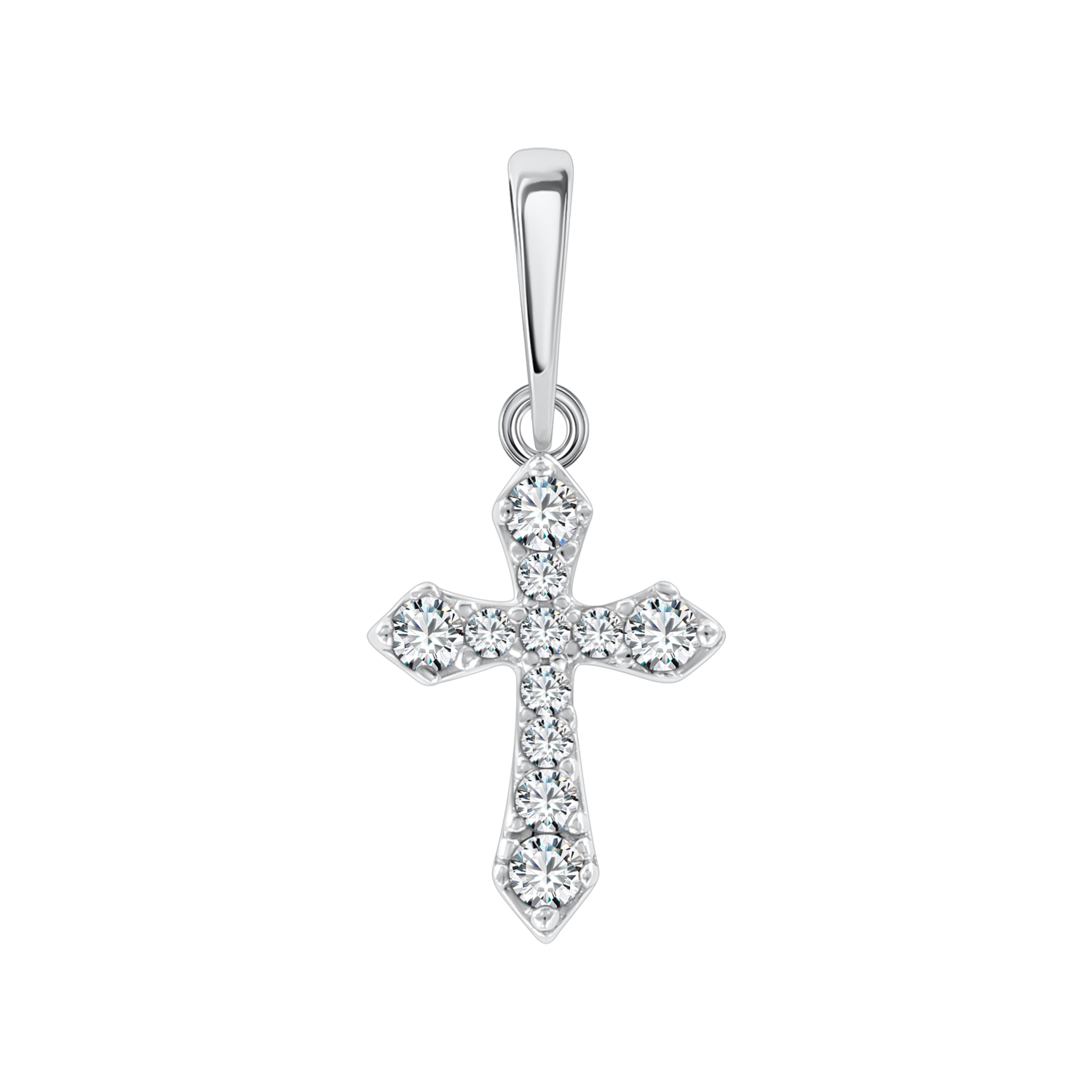 Изящный крестик из серебра 925 пробы украшен мерцающими фианитами, создающими мягкое сияние и утончённый блеск.